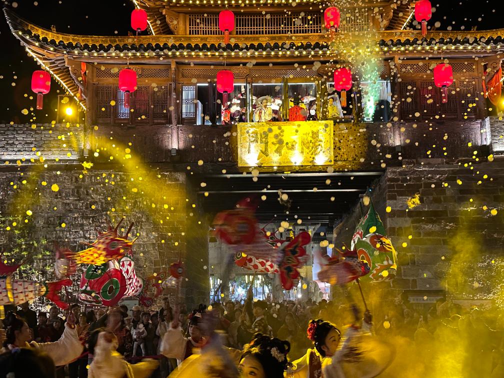 夜色渐浓,安徽歙县徽州古城阳和门上鼓声乍起,一盏盏流光溢彩的鱼灯应声游走,络绎于黛瓦飞檐间。光影摇曳中,诗人笔下“凤箫声动,玉壶光转,一夜鱼龙舞”的盛景在徽州大地复现。
